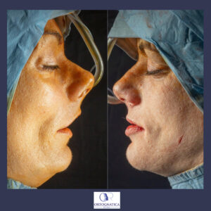 La prima cosa da tenere in considerazione è il grado di retrusione della mandibola (mancanza di proiezione del mento): se è molto evidente e nasconde, oltre che a problemi di tipo estetico anche importanti risvolti funzionali su respirazione, postura, masticazione e fonazione, la chirurgia ortognatica è la strada corretta da intraprendere. E’ un percorso chirurgico importante ma garantisce effetti definitivi e duraturi nel tempo.